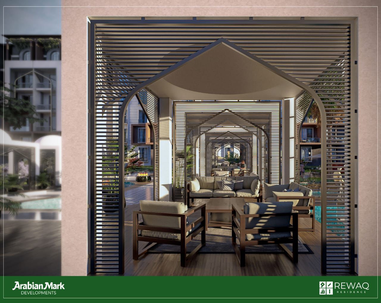 يمتد كمبوند رواق ريزيدنس أريبيان على مساحة 7 فدان، ويتميز بنسبة بنائية منخفضة لضمان المساحات الخضراء والخصوصية، ويوفر المشروع شقق سكنية غرفة واحدة وحتى 3 غرف ودوبليكس 4 غرف بمساحات متعددة